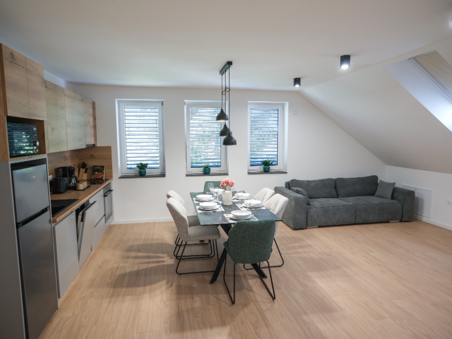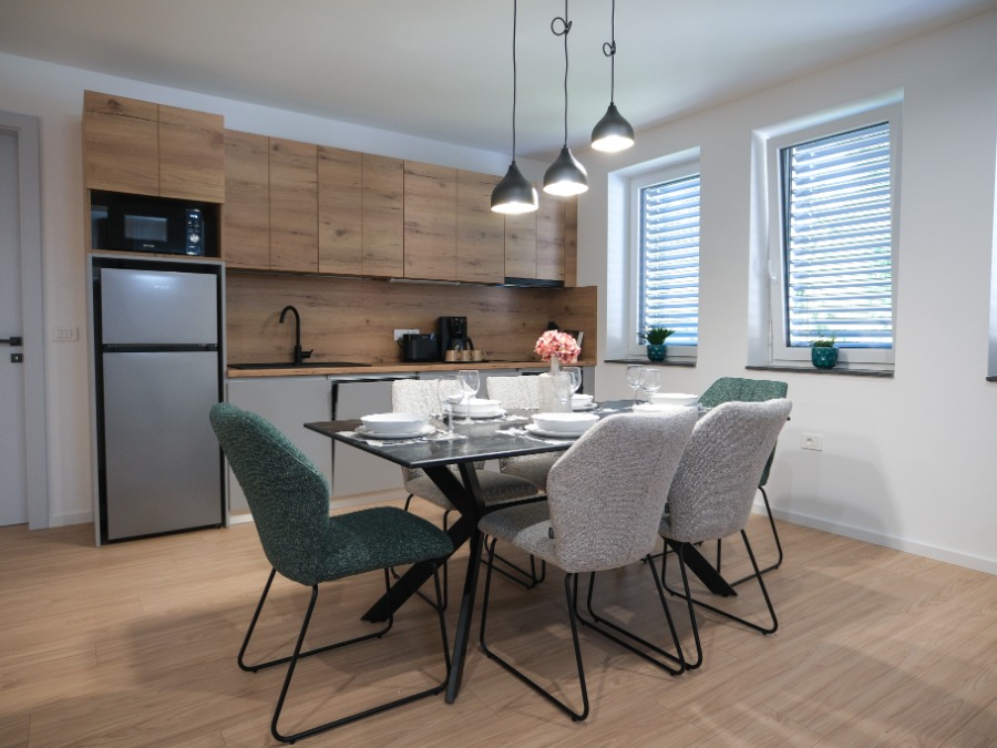 Apartma Ana je prostoren apartma z dvema spalnicama, kopalnico, kuhinjo z dnevnim prostorom in jedilnico. Primerno za cca 4-5 oseb.