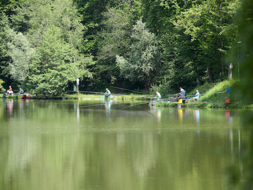 The Mačkovci Fishponds – Ribniki Mačkovci in Slovene – camper van parking space is situated on a gravel carpark, but available facilities include electricity, water, wastewater disposal and the emptying of cassette toilets. Fishing enthusiasts can fish for various freshwater fish species in an idyllic setting. And if you wish to pamper your taste buds in a pleasant natural environment, then this is the right place as the Ribnik Dular Inn (Gostilna Ribnik Dular in Slovene) offers fish specialties and other tasty dishes, not forgetting the wines from the Bizeljsko-Sremič region.