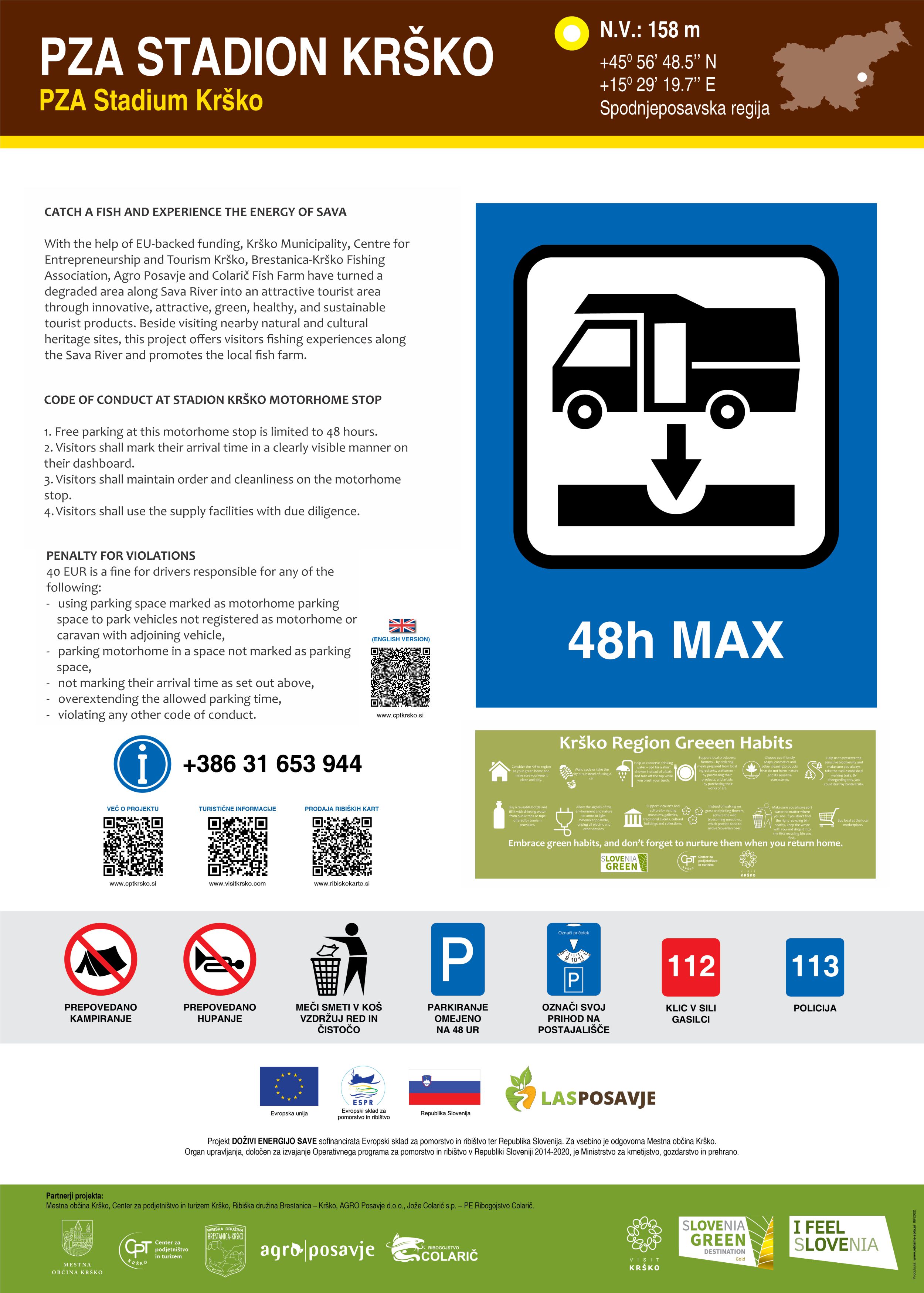 The ‘Stadion Matije Gubca’ camper van parking space is paved with asphalt. This location is an excellent starting point for a stroll to Krško Old Town, where you may see the City Museum of Krško, the Krško Gallery, the Valvasor Library, etc., not to mention roaming around the town’s surroundings, either on foot or by bike.
