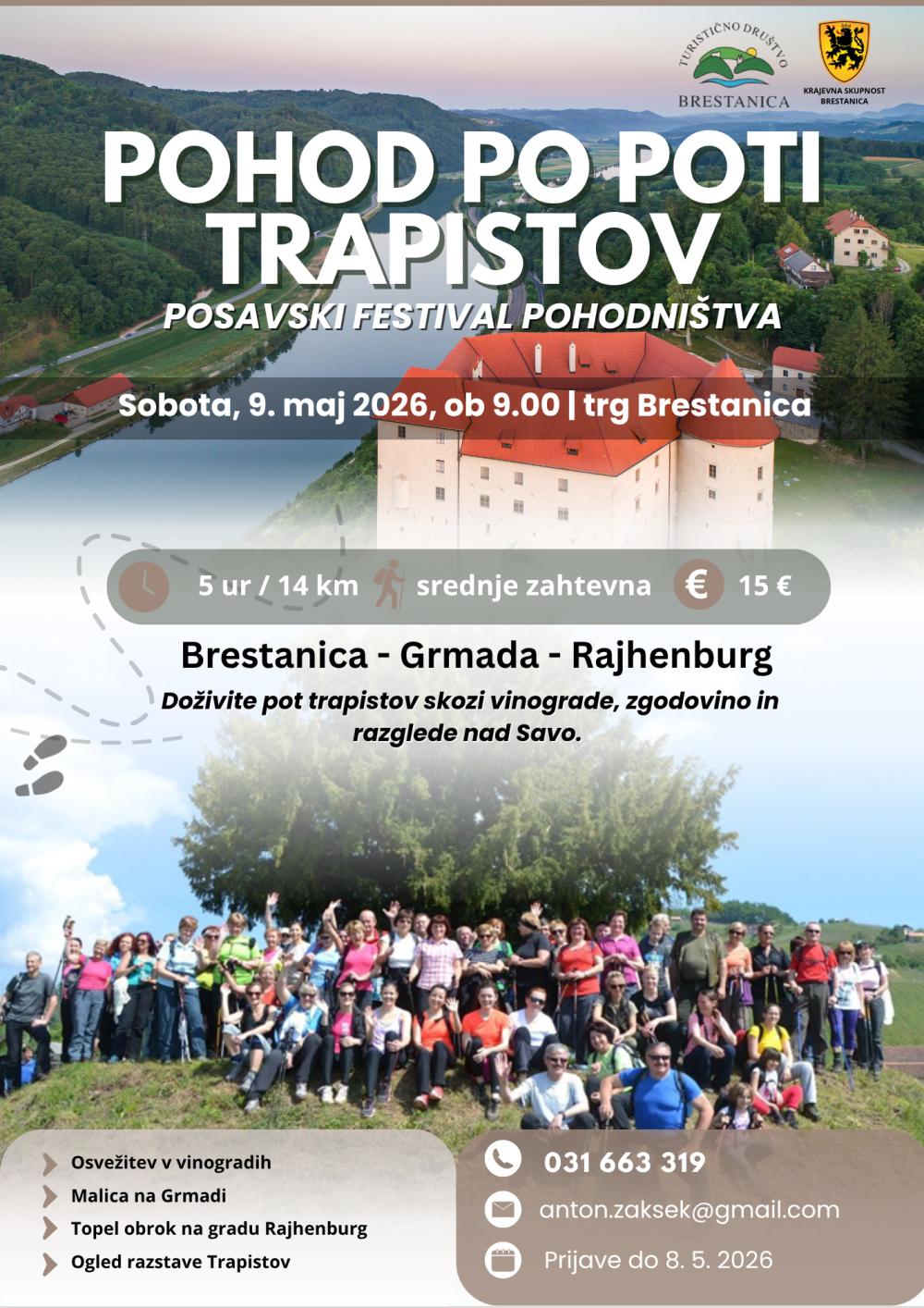 Prijave in informacije: prijavite se do petka 8. 5. 2026 na tel. številko 031 663 319 ali el. naslov anton.zaksek@gmail.com