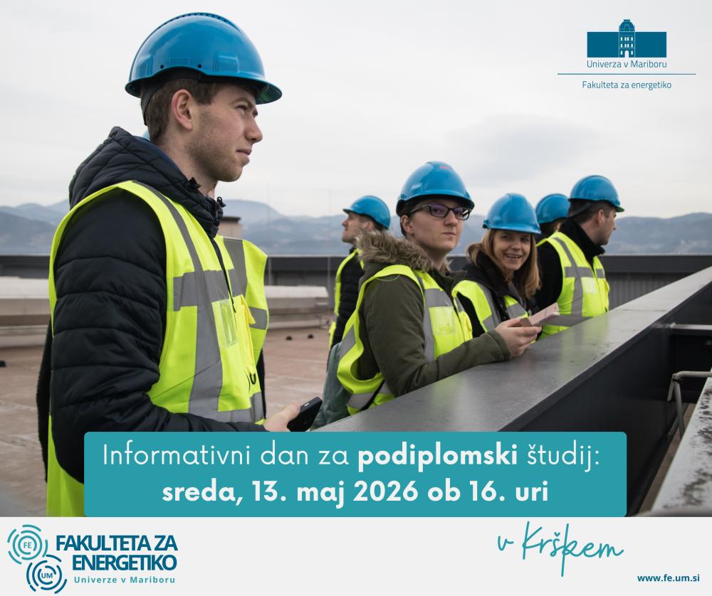 Vljudno vas vabimo na Informativni dan za podiplomski študij na Fakulteti za energetiko Univerze v Mariboru, ki bo potekal v sredo, 13. maja 2026, ob 16. uri na Inštitutu za energetiko v Krškem (Vrbina 18).